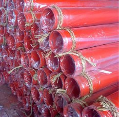环氧树脂粉末涂层韧性好,钢管机械强度高,对冲击、弯曲等外来影响,具有很强的接受能力,性能优于其他管材 涂塑复合管的使用技巧 经除锈,刷油处理后的管件、管材、型钢、托吊支架等金属制品,应放在有防雨、雷措施及运输畅通的专用场地,其周围不应堆放杂物 涂层检测,卫生平安性能,弯曲试验,压扁检测等项目,这是关于涂塑复合管质量方面最为权威的检测规范,也是区分该产品是否合格的权威参照答案 复合管不适于输送某些化学品,如酯、二氧化碳、芳香烃、稀释剂、四氯化碳、酮、乙醚等,以防止内衬塑料管或涂层出现软化和侵蚀现象 运输、装卸和装置过程中切勿剧烈撞击,抛摔复合管 管道装置时,不允许采用临时支吊架,不得用铁丝、石块等作为临时支吊架,尽早装置正式支吊架 支吊架焊接同管道焊接要求相同,焊道要饱满,焊接完毕须经检查人员检查合格后,方可进行管道装置 使用前请检查复合管内壁的内衬塑料或除层,发现复合管因受冲击而使内层损坏,请将损坏的局部切除 涂塑复合钢管的施工工艺 一、检验:管材进厂后,检查数量、壁厚是否符合要求,有缝或无缝管材,管材两端是否圆整和弯曲; 二、去污:检查管材(管件)否有油污,如有用OP液去除并用清水清洗,如发现有毛刺后去除、磨平; 三、酸洗:将管材(管件)浸入盐酸池中浸泡(20-25分钟,除锈后捞出,转入下一道工序; 四、水洗:将酸洗后的管材放入清水池中水洗一次后捞出; 五、磷化:将清洗完毕的管材(管件)浸入磷化液中浸泡(10-15分钟捞出并晾干; 六、喷涂:将晾干后的管材(管件)放置在管架上进行内、外喷涂,喷涂前根据客户要求选择不同颜色的涂粉,喷涂过种中要严格控制静电量、喷机的转速、喷枪的出粉量,做到喷涂均匀,防止漏点; 七、固化:待烘干管材进入烘干车间后,工作人员要及时调整管材的摆放位置,尽量做到只留支撑点的损伤面积,依照涂粉的周化要求,预先调试好烘箱温度及固化时间,并做好每一炉的记录;产品出烘箱时,严禁在高温下作业,用裸水触摸;待产品冷却后,正确摆放,查找磨损点,及时修补后转入下道工序; 八、包装:用测厚仪检查产品内外壁喷层厚度是否符合要求,用测漏仪检验产品内部是有无漏点,如全部合格后,用专用工具进行包装